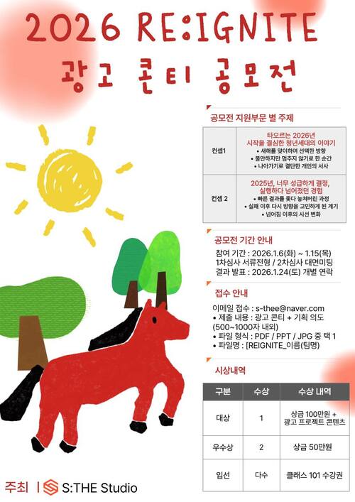 - 대상 (1팀)상금 100만원 + 광고 프로젝트 콘텐츠화
