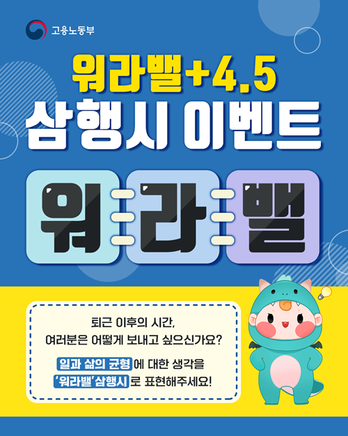 ![[고용노동부] 「워라밸+4.5 프로젝트」 워라밸 삼행시 이벤트](https://api.momitory.com/uploads/81/2/20260326_093332698.png)