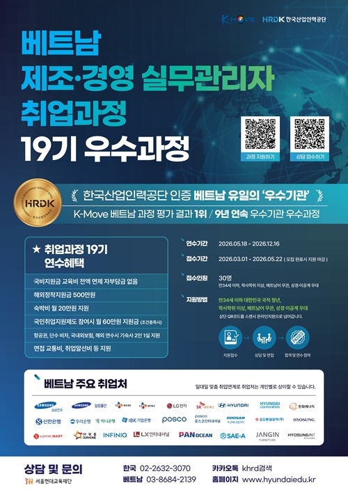 - 베트남 제조·경영 실무관리자 취업과정 19기 우수과정 모집