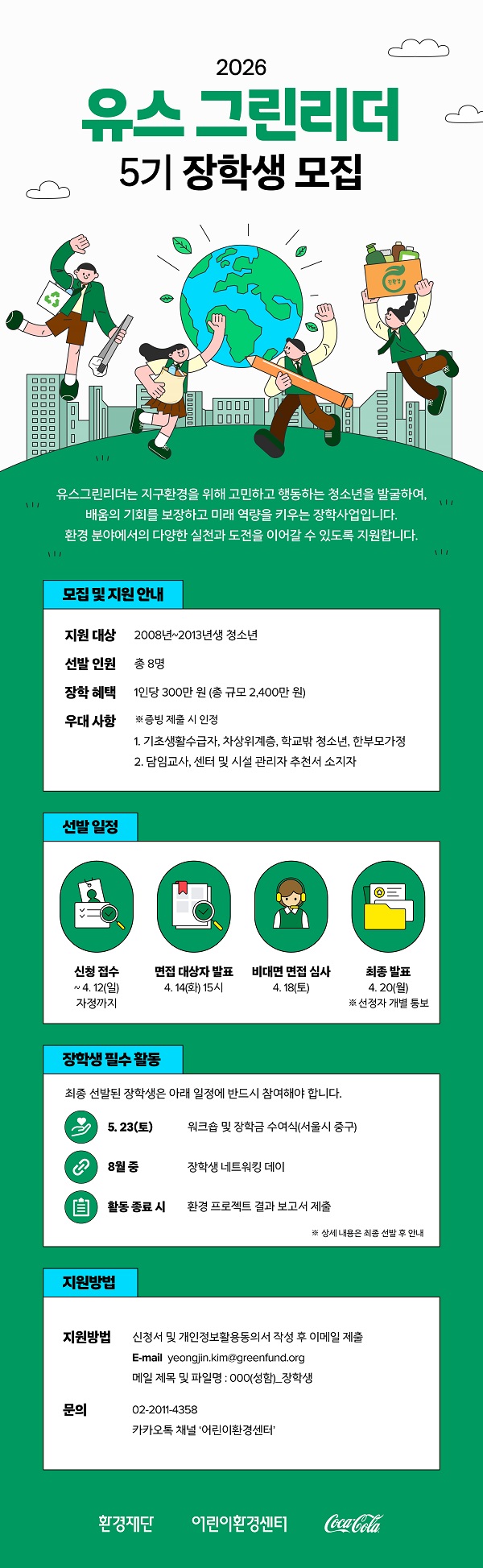 - 문의 : 환경재단 어린이환경센터 02-2011-4358 / 카카오톡 채널 환경재단 어린이환경센터