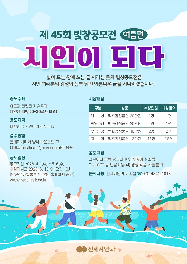 ![[광주 신세계안과] 제45회 빛창공모전 여름편 공모(~5/6)](https://api.momitory.com/uploads/81/2/20260331_082536133.jpg)