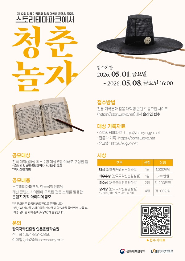청춘! 스토리테마파크에서 놀자 “제12회 전통 기록문화 활용 대학생 콘텐츠 공모전”