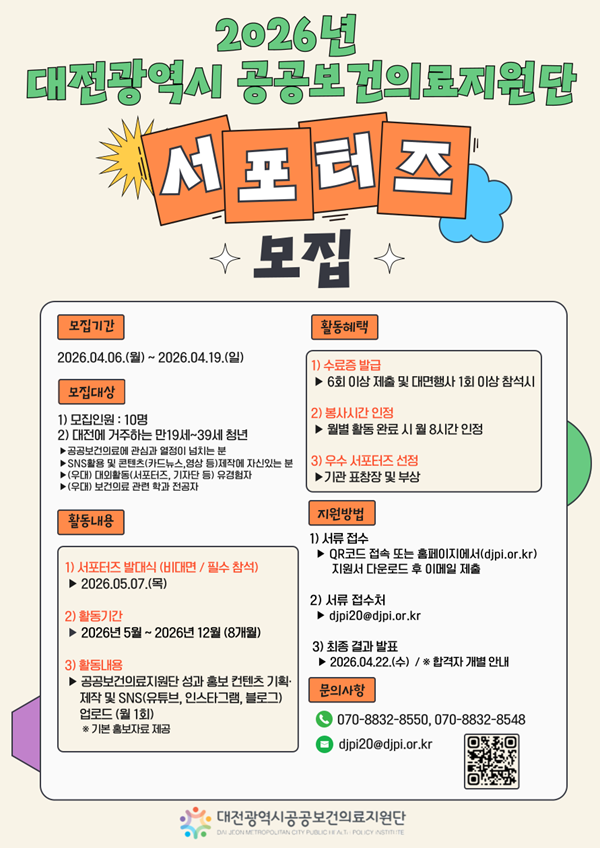 2026년 대전광역시 공공보건의료지원단 서포터즈 모집