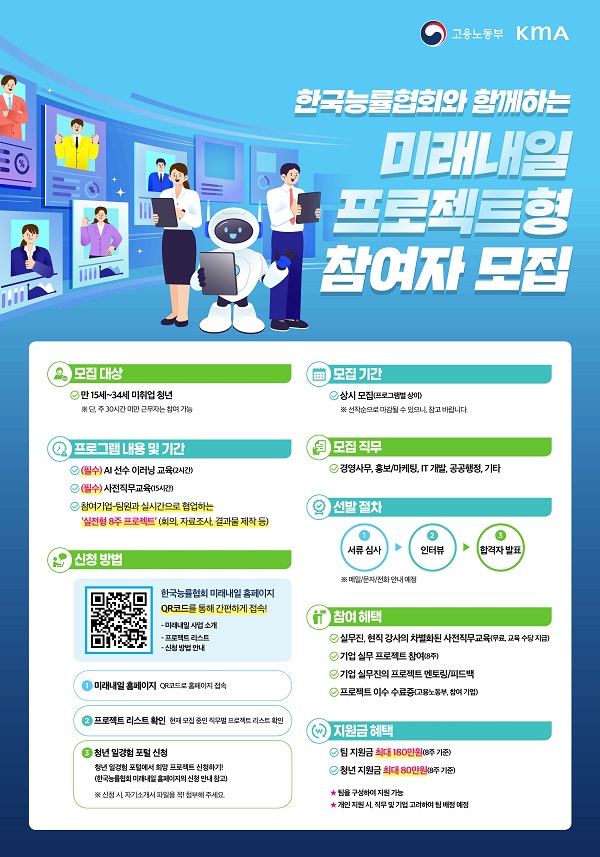 [고용노동부/한국능률협회] 마케팅/IT/경영사무 미래내일 일경험 프로젝트 참여자 모집!