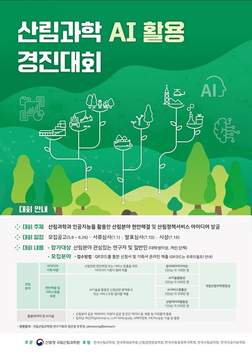 - 산림과학과 인공지능을 활용한 산림 분야 현안 해결 및 산림 정책 서비스 아이디어 발굴