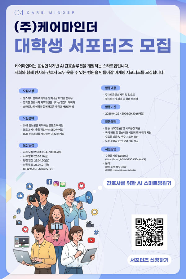 - 문의사항: 070-4517-7359 (전화) / contact@careminder.biz (이메일)