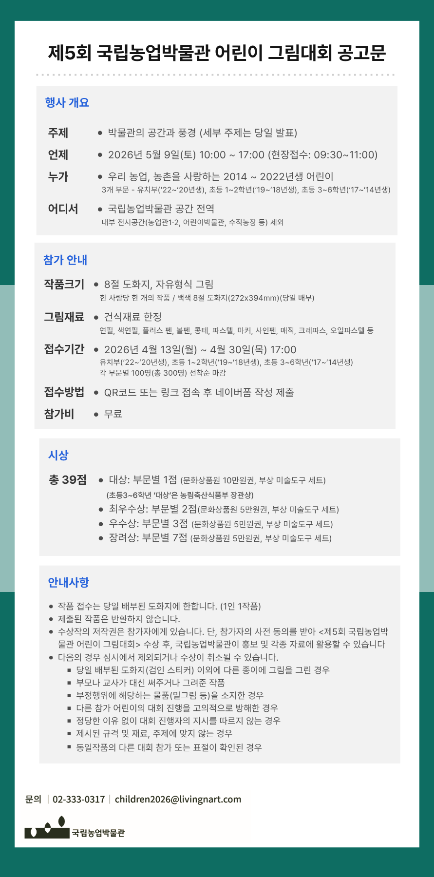 - 제5회 국립농업박물관 어린이 그림대회 운영 사무국