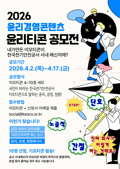 ![[한국전기안전공사] 2026 윤리경영 콘텐츠 윤리이모티콘 공모전](https://api.momitory.com/uploads/81/2/20260415_091425690.png)