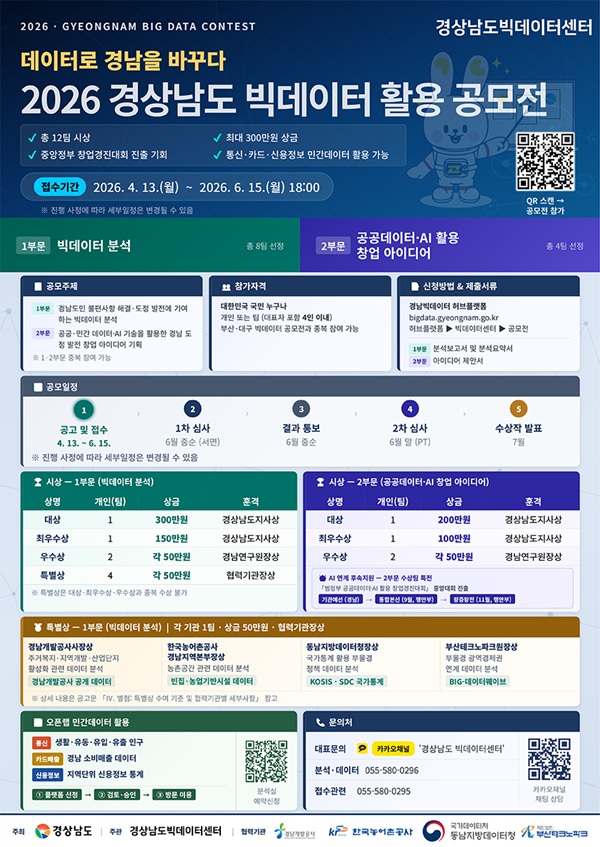 - (2부문) 공공·민간 데이터 및 AI 기술을 활용한 경남 도정 발전 창업 아이디어 기획