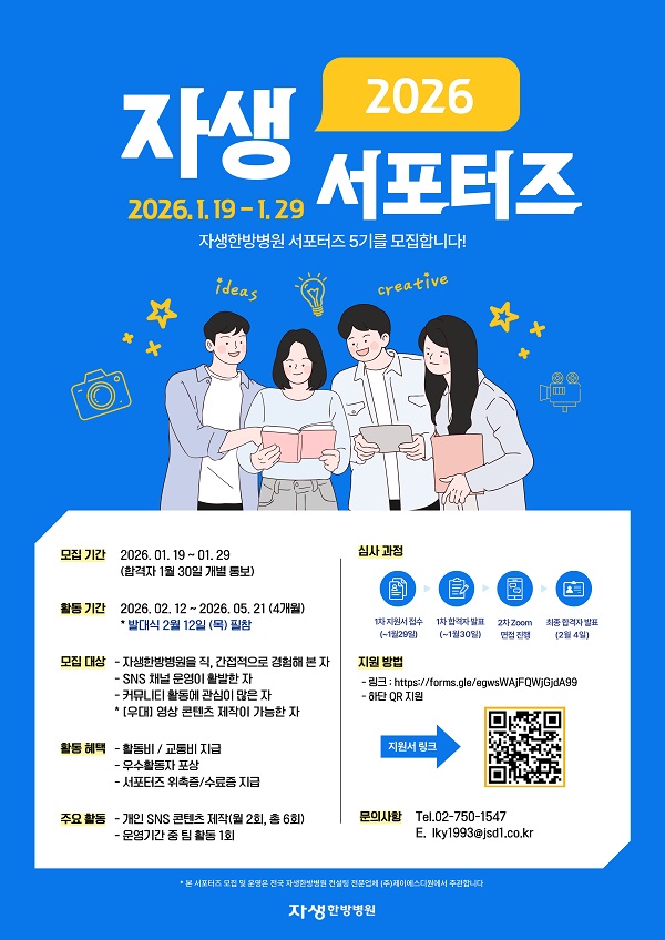 - 1차 서류접수: 2026.01.19(월) ~ 2026.01.29(목) (1차 합격자 1월 30일 개별 통보)