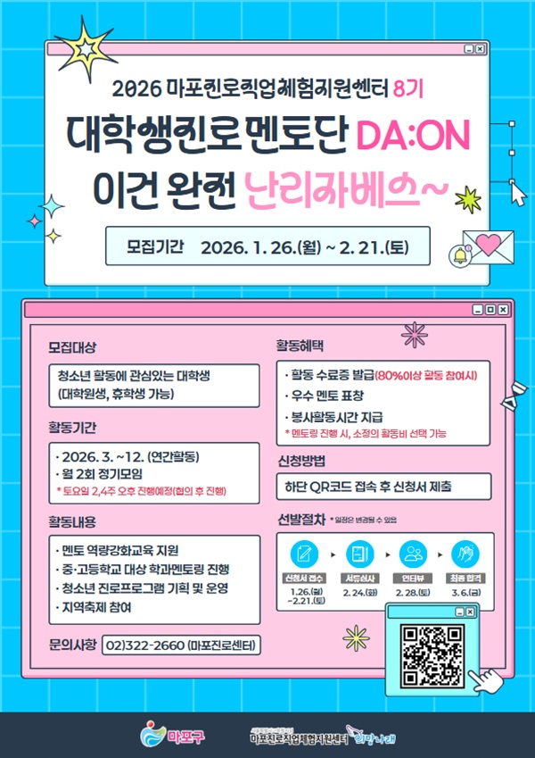 마포진로직업체험지원센터 대학생진로멘토단 ‘DA:ON’ 멘토 모집