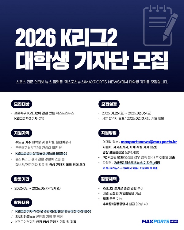 맥스포츠뉴스 2026 K리그2 대학생 기자단 모집