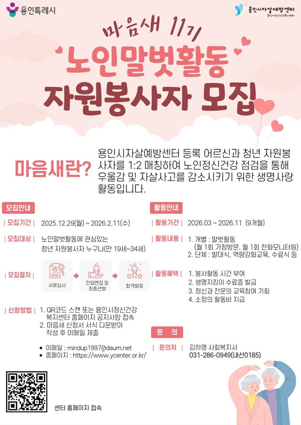 [용인시자살예방센터] 2026 마음새 11기 자원봉사단 모집