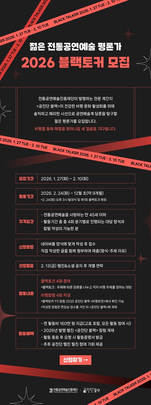 젊은 전통공연예술 평론가 2026 블랙토커 BLACK TALKER 모집