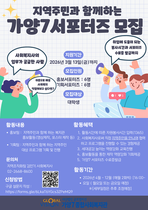 가양7종합사회복지관 가양7서포터즈 참여자 모집
