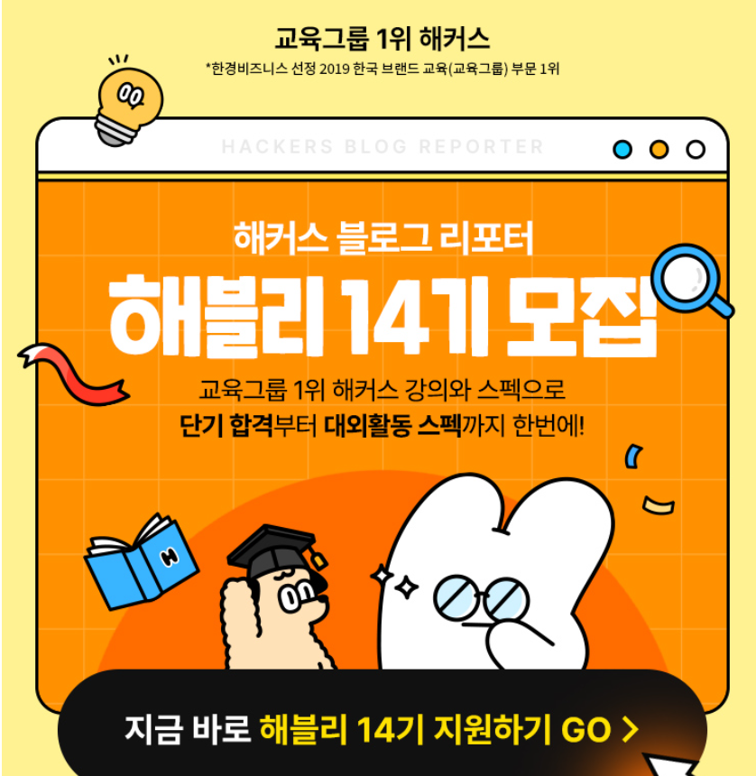 해커스 블로그 리포터 해블리 14기 서포터즈 모집 중!