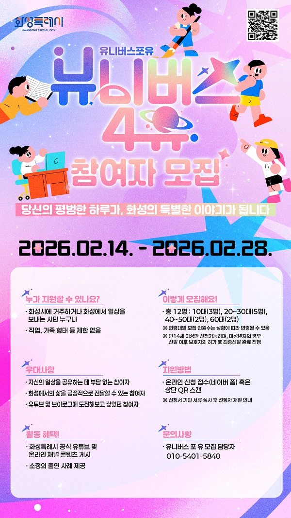 <유니버스 포 유> 참가자 모집 (화성 시민 일상 브이로그 콘텐츠 참여자 모집)