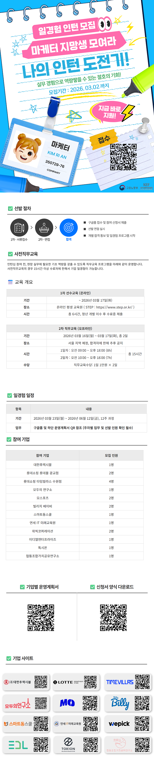 * 선발(면접) 일정은 기업별 상이하며 사전에 공지드릴 예정입니다.*