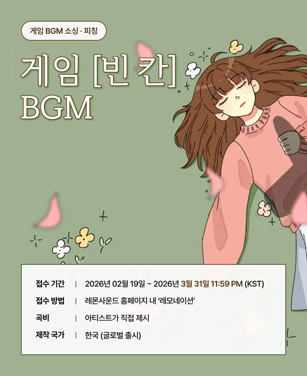 - 선정된 이후에는 디렉터 팀 및 레몬사운드 전문 사운드팀과 함께 음원이 최종 확정됩니다.