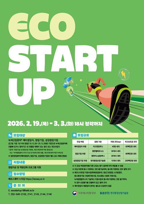 『2026년도 에코스타트업 지원사업(일반창업분야)』을 다음과 같이 공고합니다.