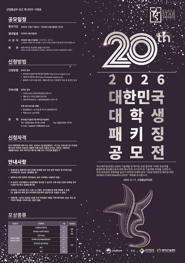 2) 학생부문 심사 자료 제출처 : 한국생산기술연구원 패키징기술센터