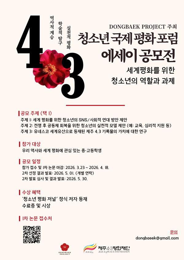 제주 국제 학교 동아리 동백 프로젝트가 주최하고, 제주 4·3 평화 재단이 공동 주관하는