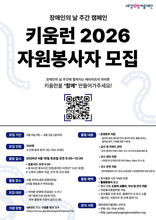 장애인의 날 주간 캠페인 '키움런 2026' 자원봉사자 모집