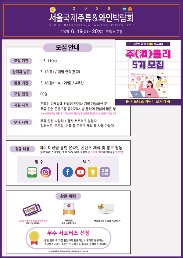 [2026 서울국제주류&와인박람회 ] 공식 온라인 서포터즈 ★주블리 5기★ 모집