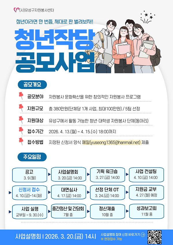 - 유성구 지역에서 활동 가능한 청년·대학생 자원봉사 단체(동아리)