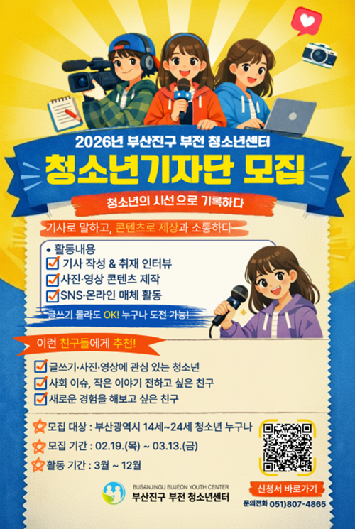 2026년 부산진구 부전 청소년센터 청소년기자단 모집