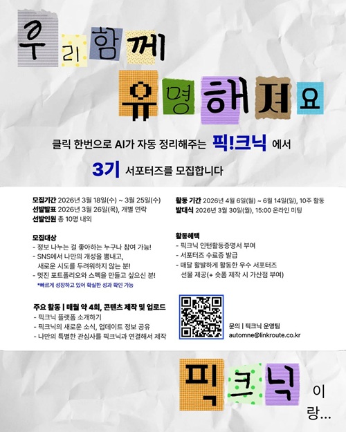 ![[3기 모집] 픽크닉 서포터즈 함께 빛날 분들을 찾아요!](https://api.momitory.com/uploads/455/2/20260318_104950440.jpg)