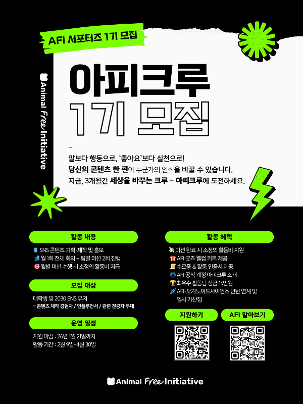사단법인 애니멀 프리 이니셔티브응모분야